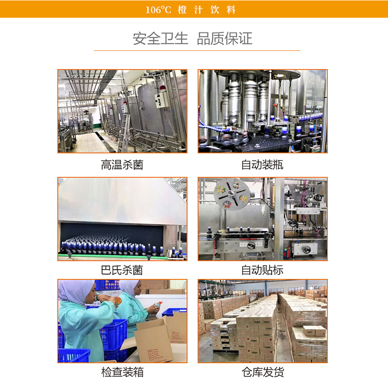 水、橙汁、白砂糖、果糖、檸檬酸、黃原膠、山梨酸鉀、苯甲酸鈉、誘惑紅、檸檬黃、食用香精